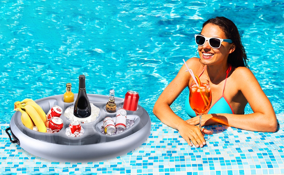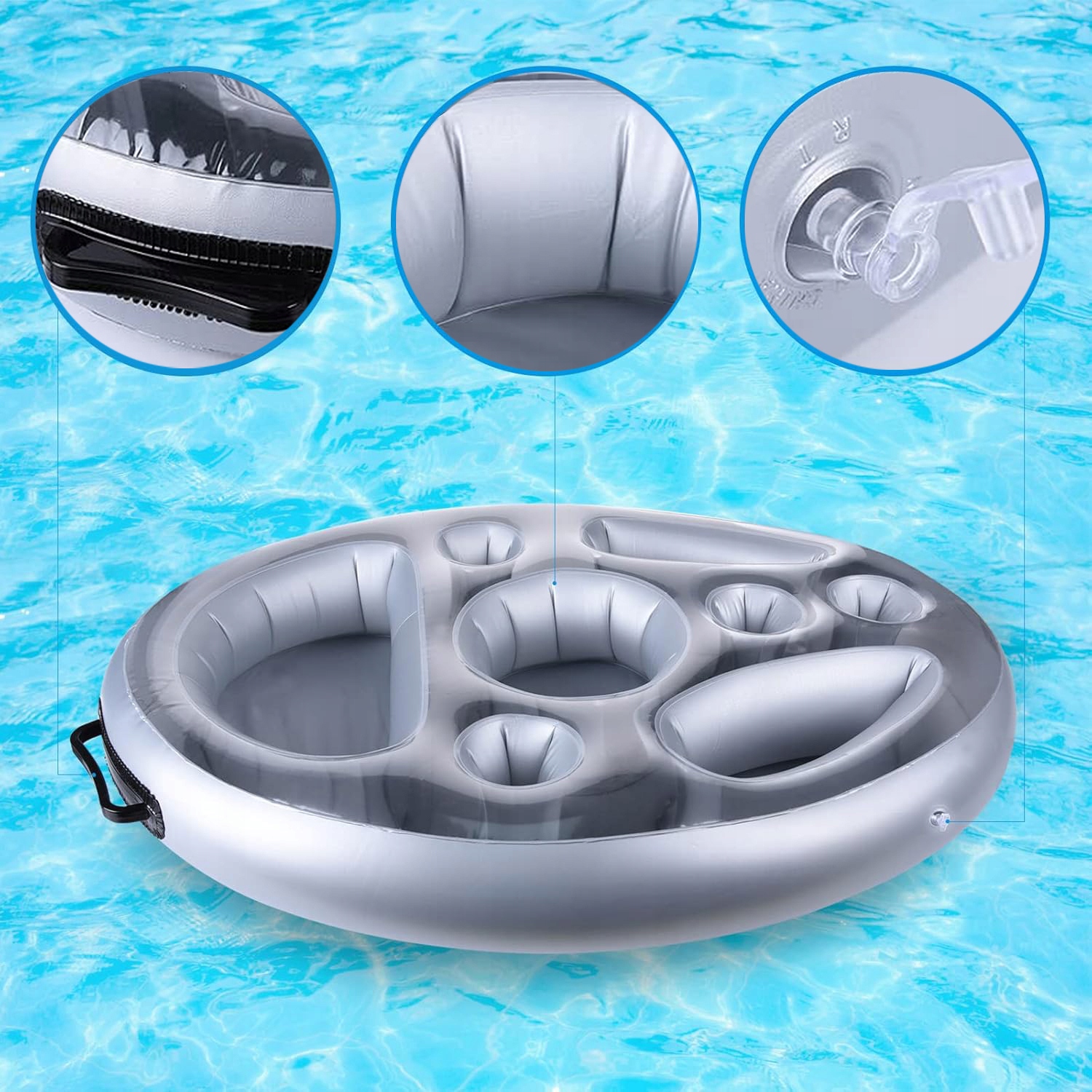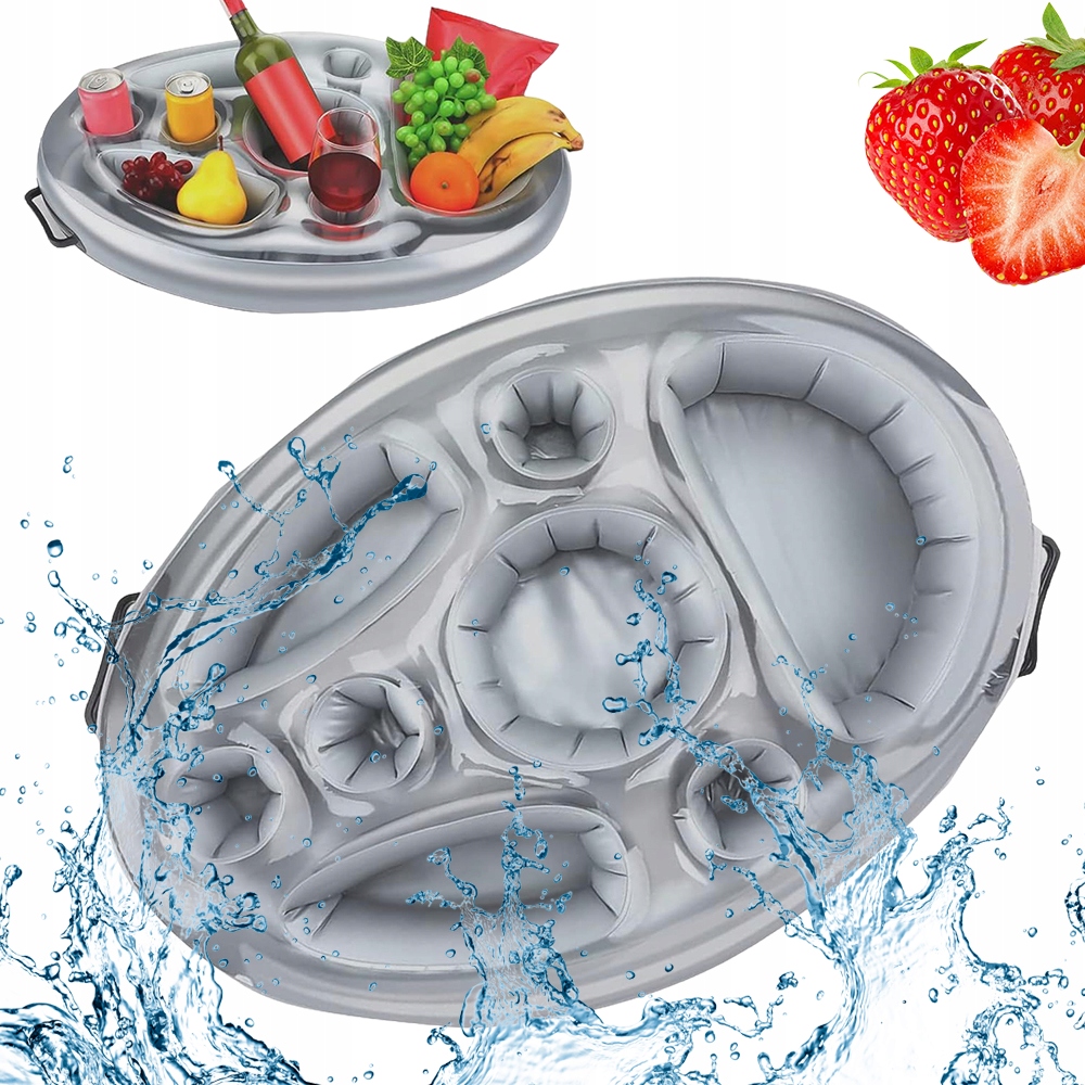 Плавающий бар. Надувной стол для вечеринки у бассейна 8 лунок серые
