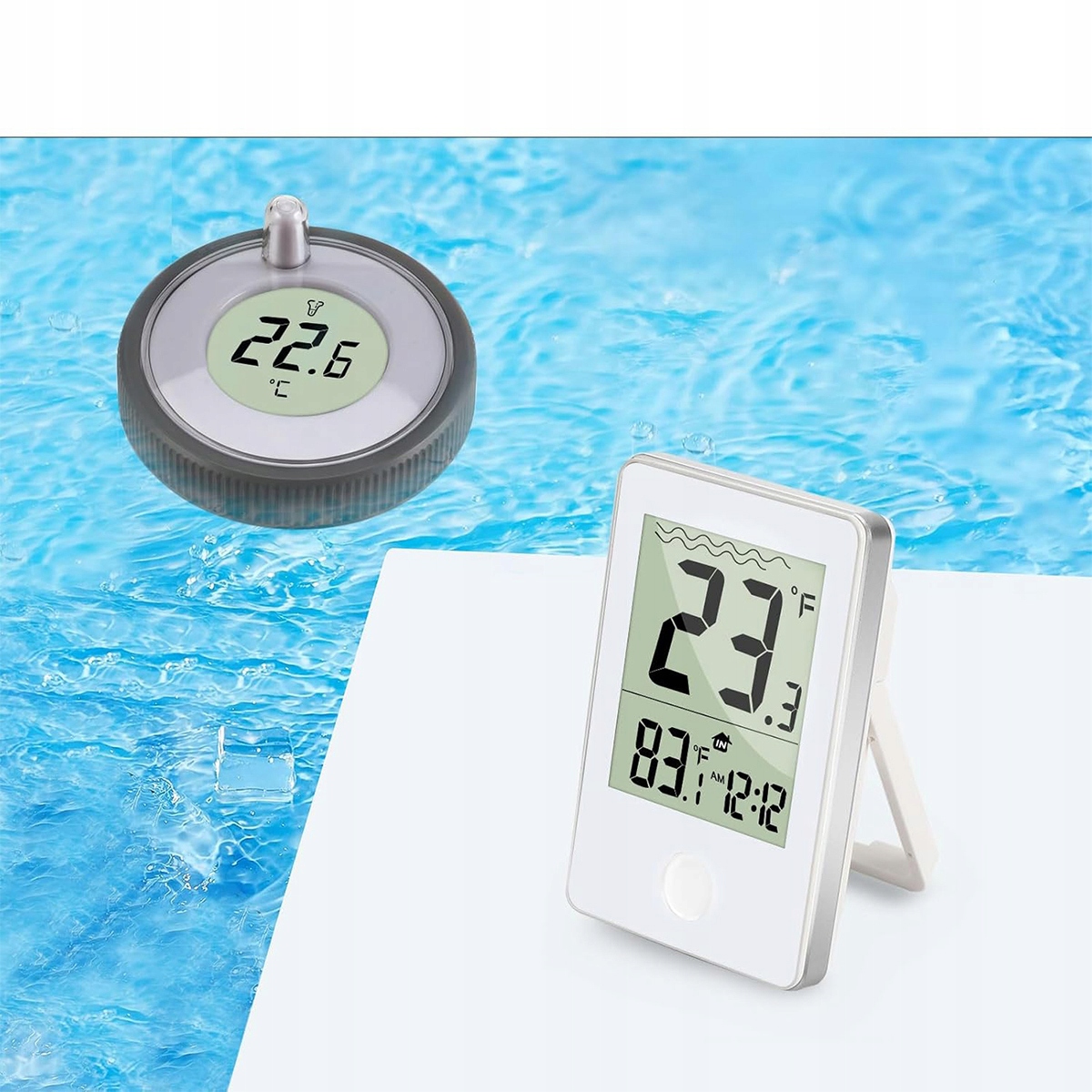- 【способ ленивого】 Это очень удобный способ проверить температуру воды в бассейне. После настройки все, что вам нужно сделать, это посмотреть на дисплей, и сразу же выясните, какова температура воды, без необходимости выходить на улицу, вытягивать термометр, погрузить руку в бассейн и т. Д. Но будьте осторожны: крышка бассейна должна быть прикручена с большой силой. Если вода попадает внутрь, высушите ее феном, то приведите ее назад, используя высокую силу!
