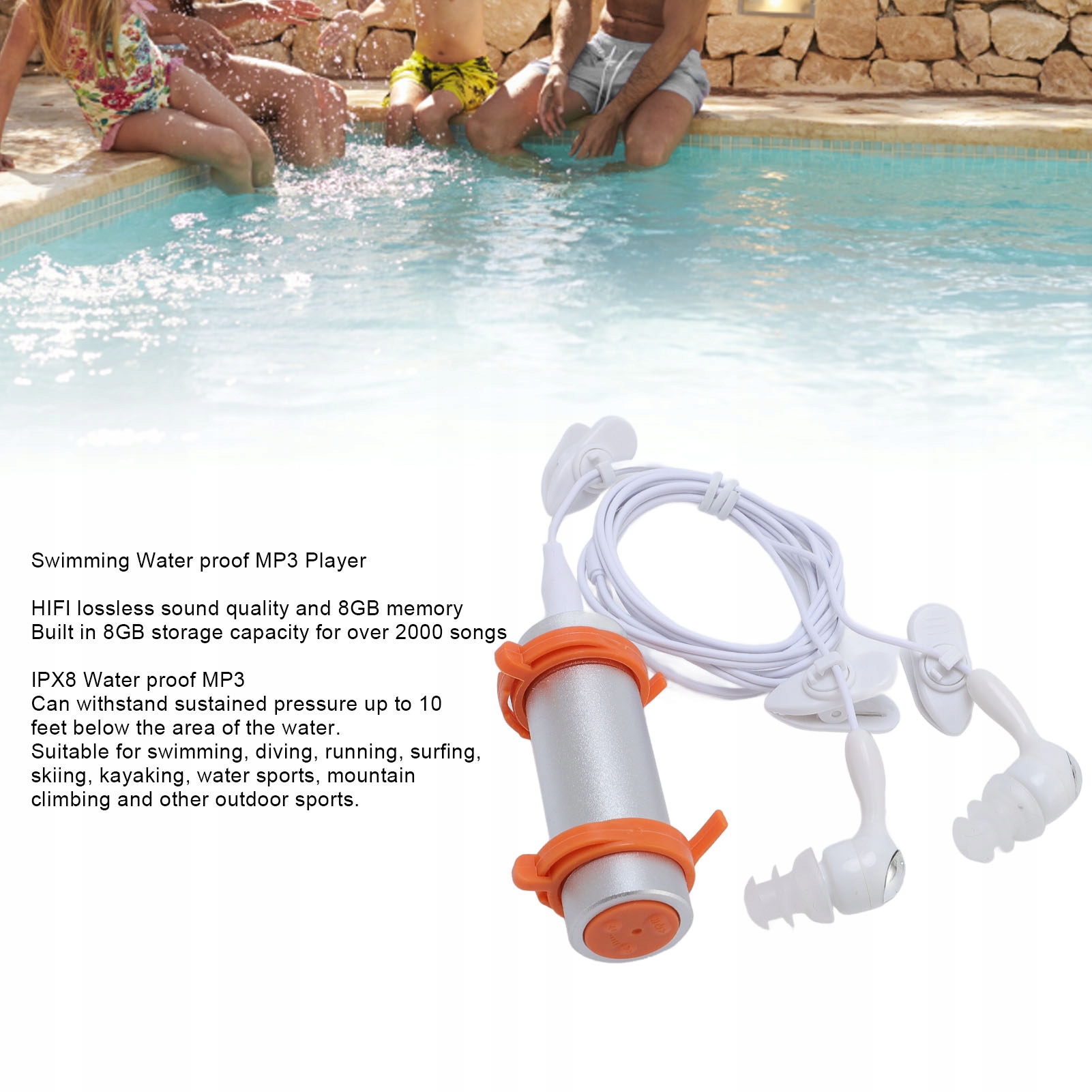2. Hifi без стриффиологического звука и память 8 ГБ: этот водный MP3 -плеер обеспечивает четкий звук даже под водой и может хранить более 2000 песен с 8 ГБ памятью. Скачайте свою любимую музыку и аудиокниги с вашего компьютера.