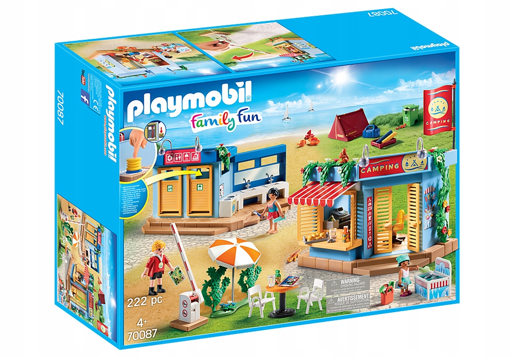 Новые игровые наборы для кемпинга от PLAYMOBIL® создают настоящее ощущение кемпинга. Как только семья приедет в лагерь, сначала нужно все построить. Помимо киоска с большим выбором свежих продуктов и напитков, здесь есть и удобный санузел. Душ, туалет, раковина, стиральная машина все имеется. Теперь, когда палатка установлена, можно пойти поиграть. Отличное развлечение на отдыхе в кемпинге, потому что, помимо здания регистрации, киоска и санитарного здания с функциональным душем, в игровой набор входит стол-бистро со стульями, три фигурки PLAYMOBIL®, палатка, игрушки для песка и многие другие аксессуары.< /п>