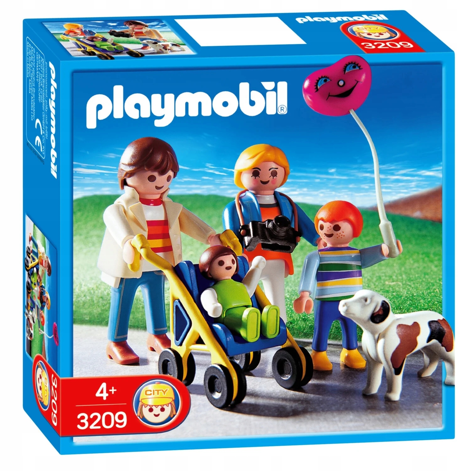 PLAYMOBIL СЕМЬЯ МАМА ПАПА ДЕТИ ПРОГУЛЯЮТСЯ С КОЛЯСКОЙ 4 ФИГУРКИ + СОБАКА