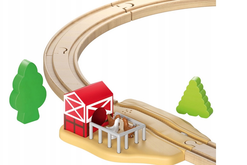 - Игровые поезда и транспортные средства могут быть связаны с другими наборами поездов и транспортных средств, совместимых со стандартными наборами с деревянными рельсами и дорогами