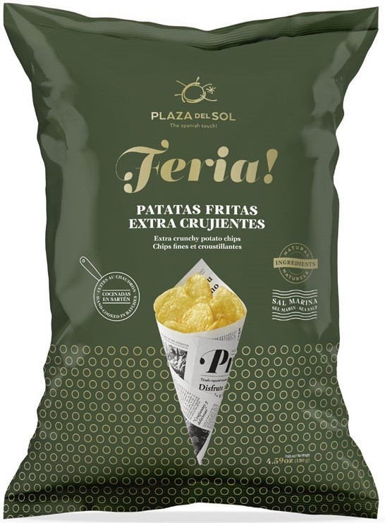 Чипсы по-испански? Plaza Del Sol с серией блестящих чипсов дарит нам вкусы Пиренейского полуострова и солнечной Испании! В данном случае у нас есть пакетик очень хрустящих картофельных чипсов с морской солью.