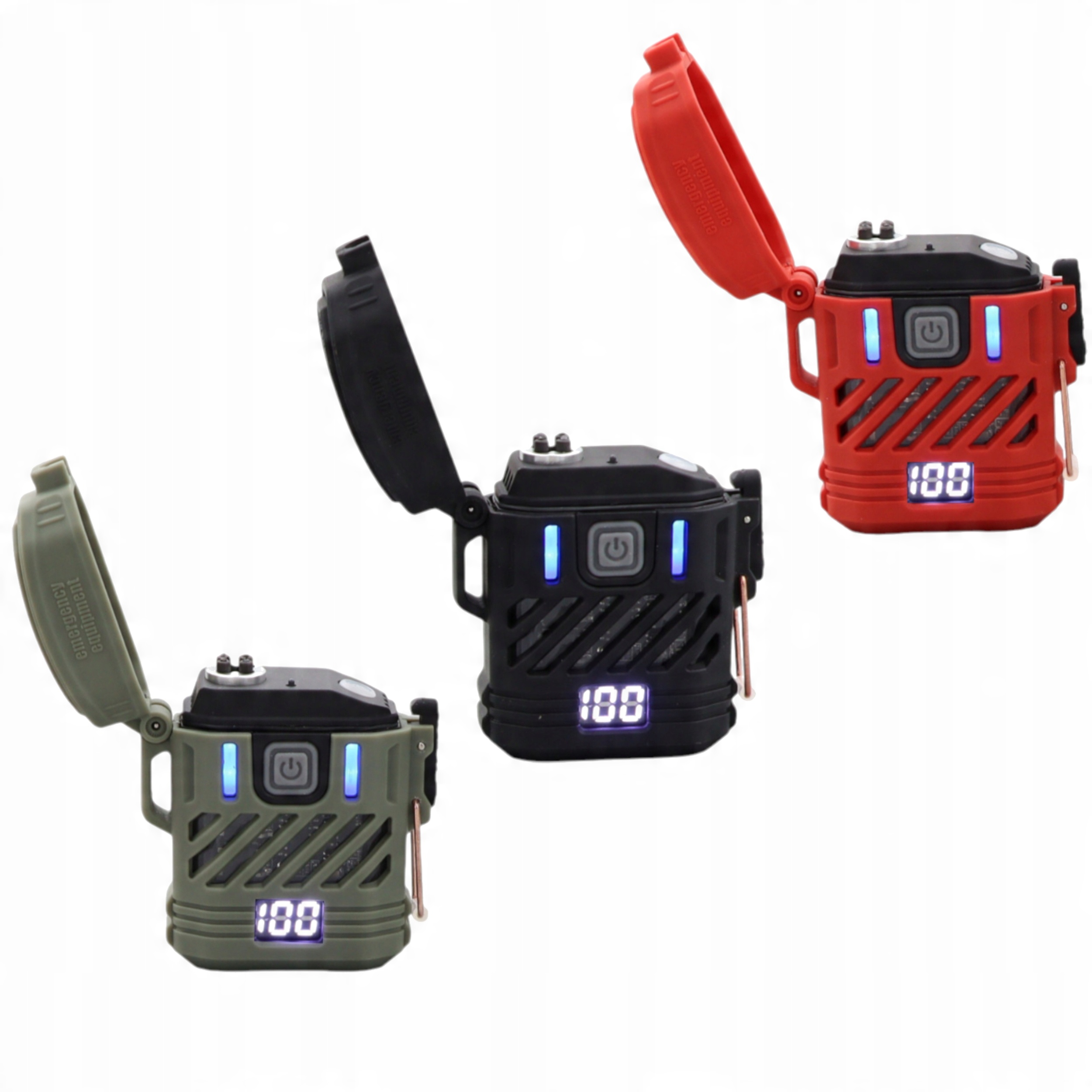 - Светодиодные светодиодные светильники (синий, красный, красный, красный) активны после открытия зажигалки, придавая ему современный, тактический вид.