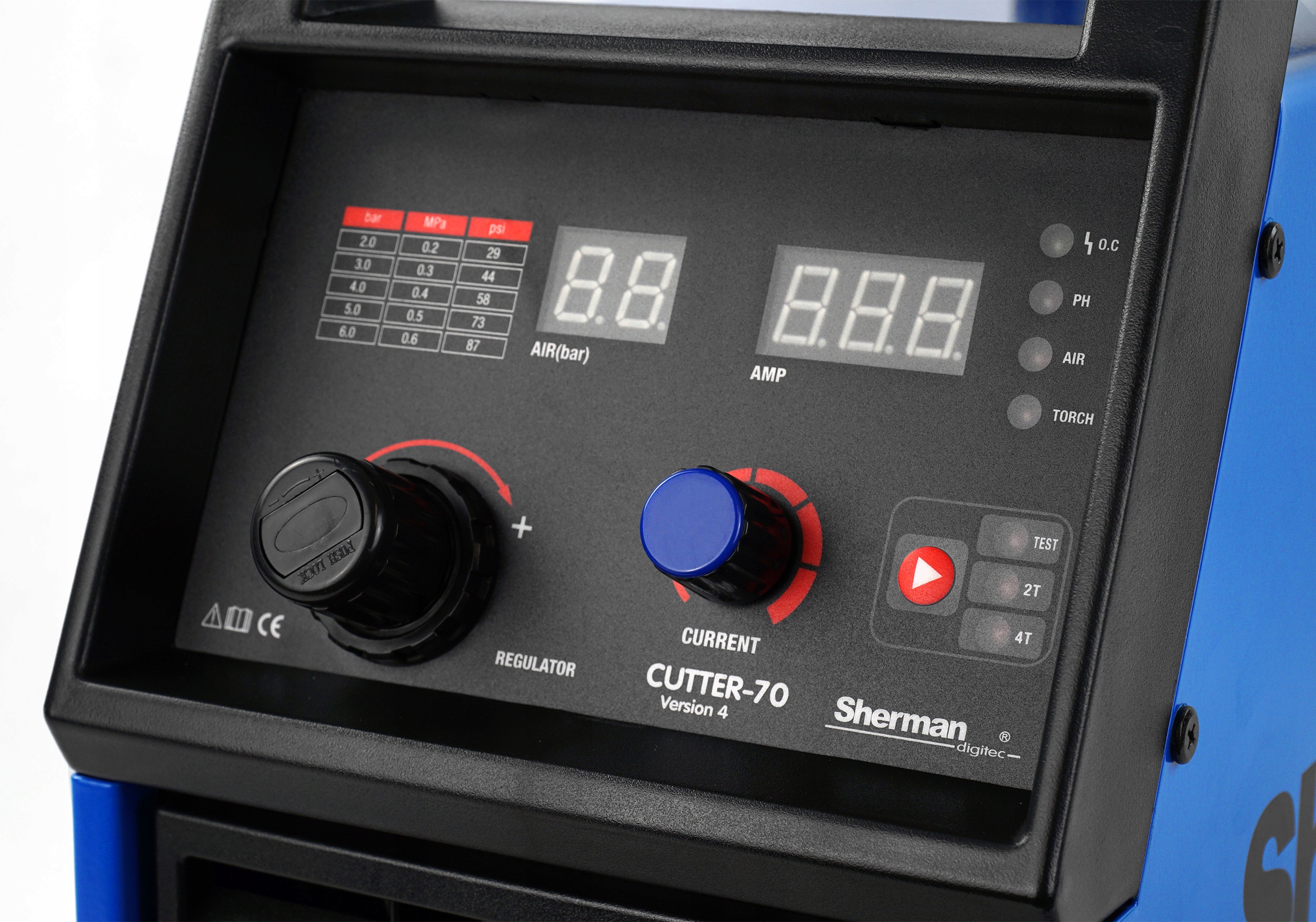 Sherman CUTTER 70 — мощный и эффективный источник плазмы, питающийся от трехфазной сети напряжением 400 В. К преимуществам этой плазмы относятся отличные параметры резки, наличие центрального разъема и держателя плазмы LT-81 в комплекте.