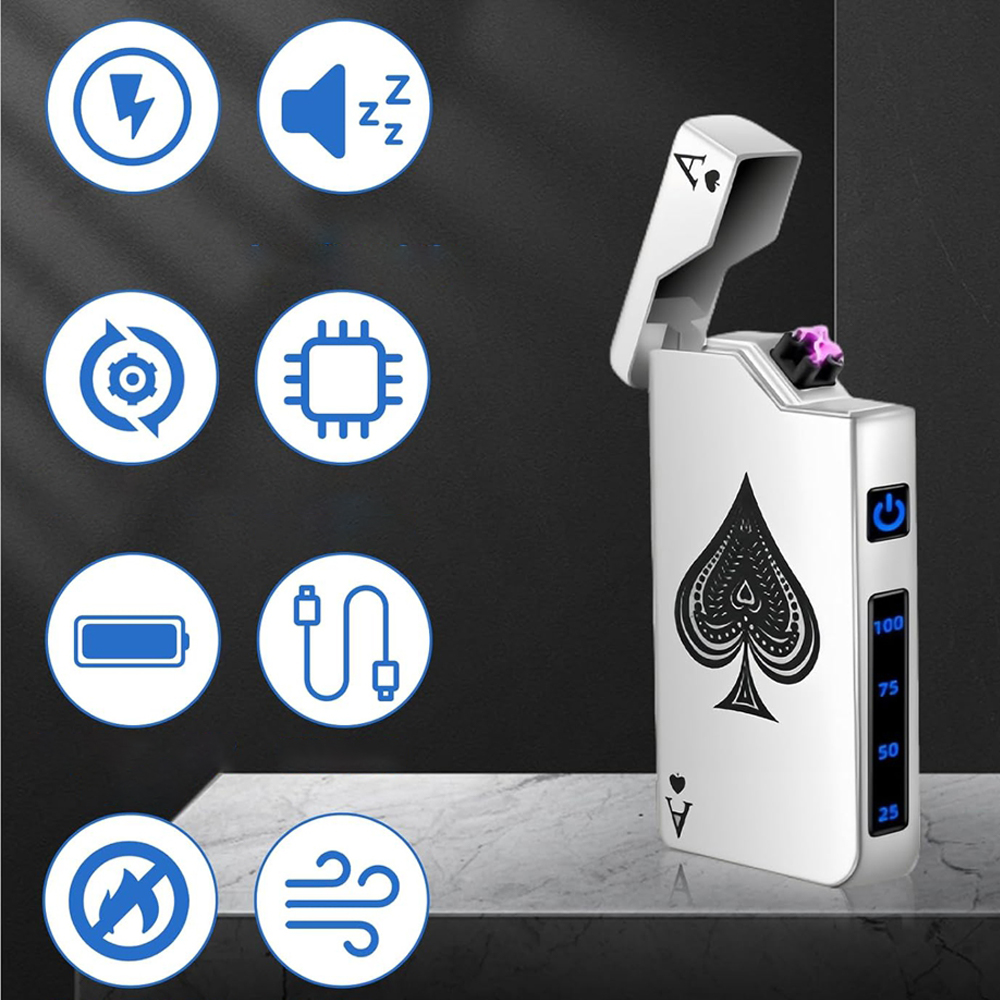 Стильная серебряная зажигалка Ace of Spades стильная и привлекательная. Улучшенная конструкция запальной головки, наклоненная на 75°, облегчает использование, когда нужно что-то поджечь. Интеллектуальная система предотвращает перегрев, а дуговая зажигалка имеет автоматическое отключение через 7 секунд.