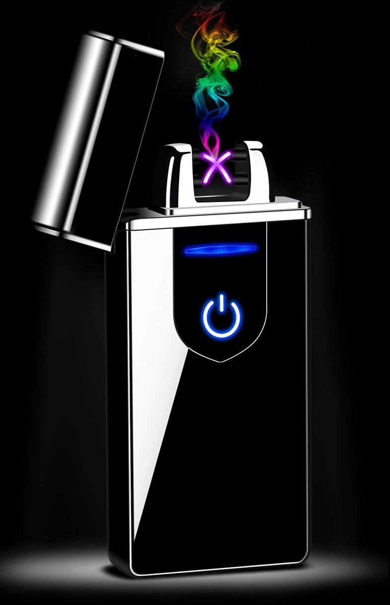 После нажатия кнопкизажигалка генерирует две плазменные электрические дуги Х-образной формы. Создается очень высокая температура, которая мгновенно зажигает сигарету, фейерверк и т.п. Дужки устойчивы к порывам ветра.