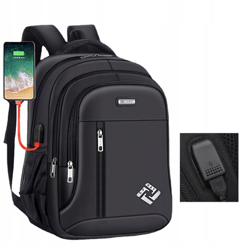 PLECAK BIZNESOWY NA LAPTOPA NA LAPTOPA WIELOFUNKCYJNY Z USB CZARNY 15,6