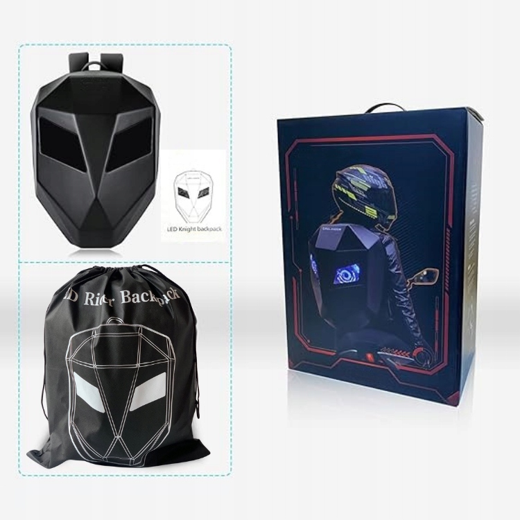 PLECAK NA MOTOR WODOOPORNY MOTOCYKLOWY Z OCZAMI LED NA KASK EKRAN BLUETOOTH