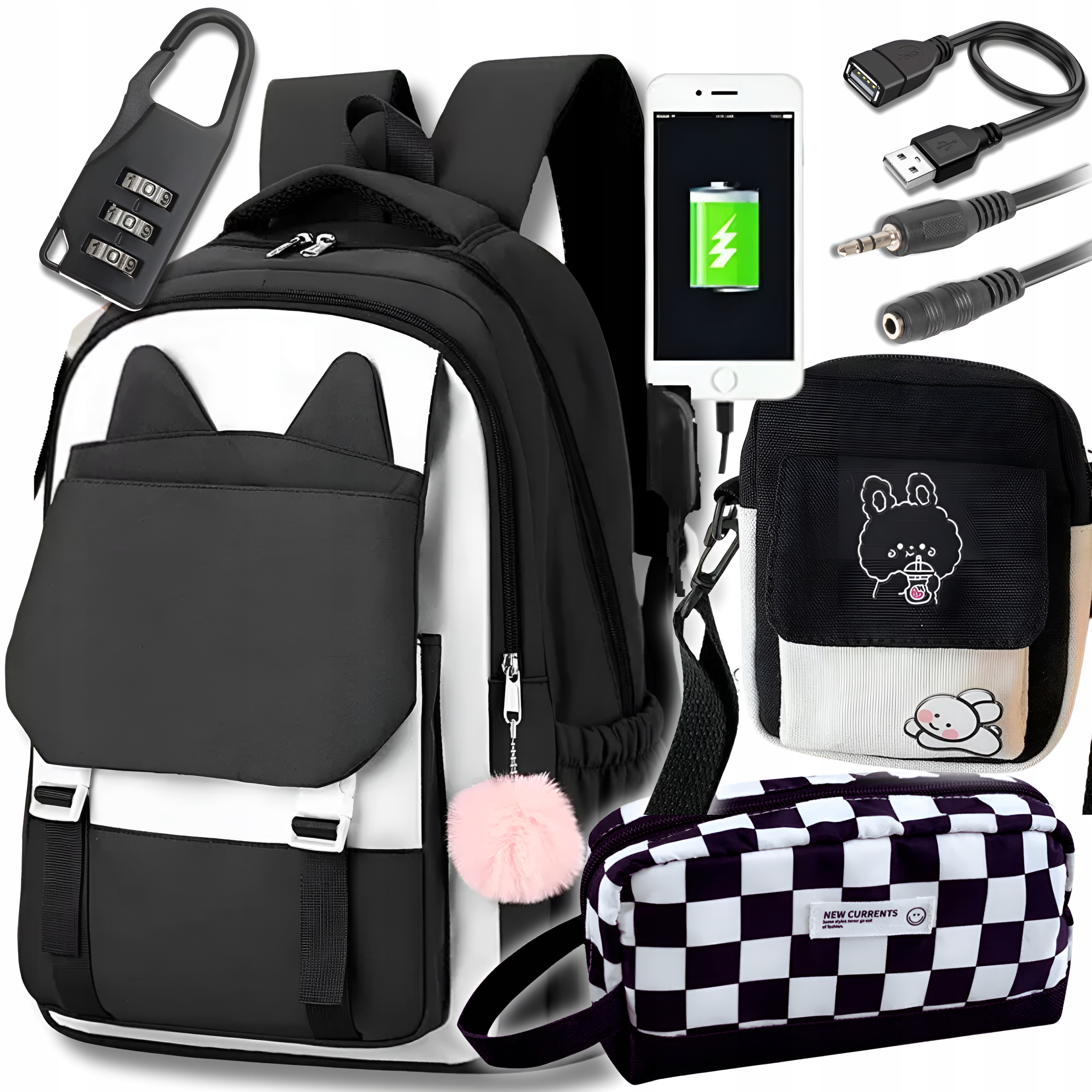 PLECAK SZKOLNY KOT KOTEK TORNISTER PIÓRNIK + TORBA DLA DZIEWCZYNKI ZESTAW