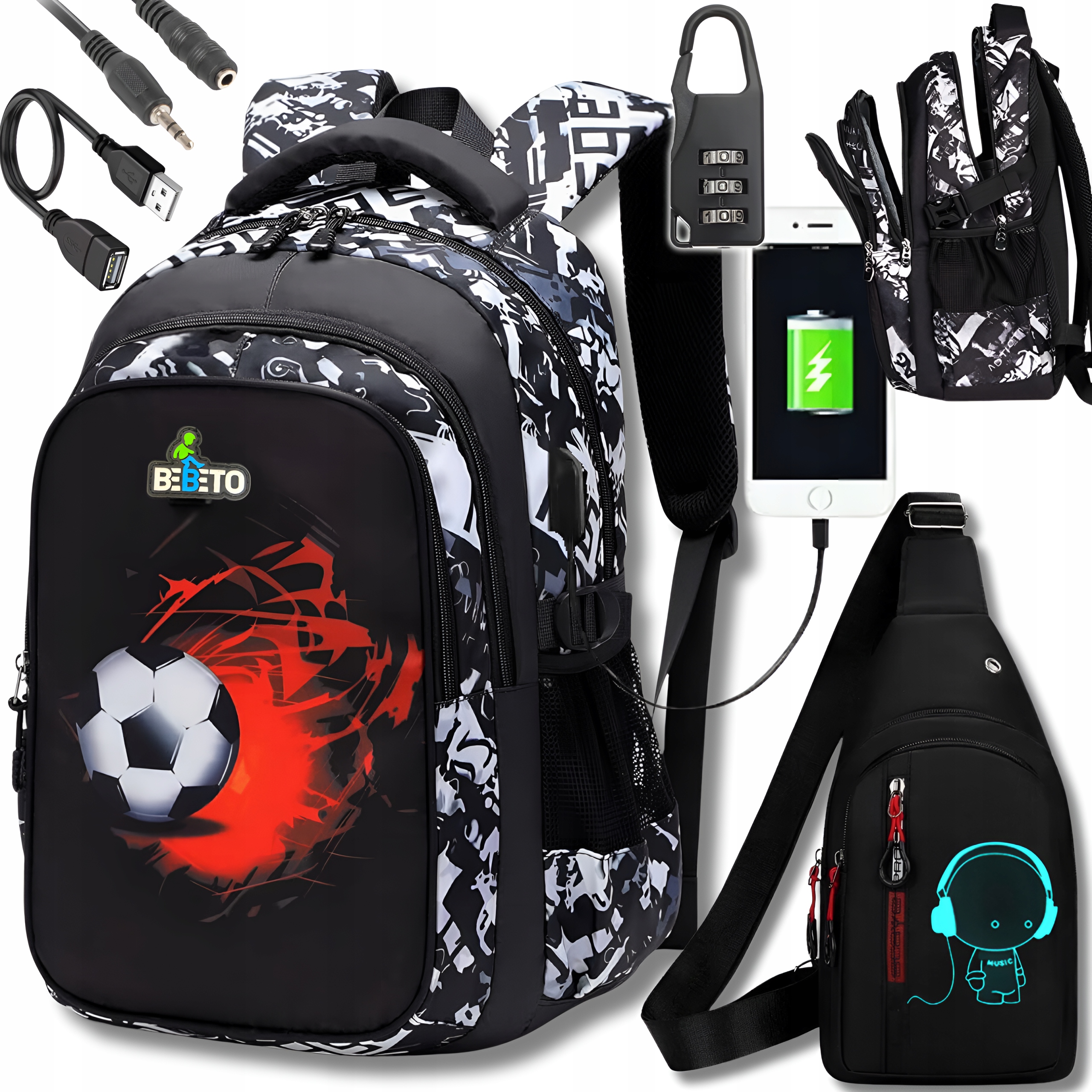 ✅ РЮКЗАК ШКОЛЬНЫЙ РЮКЗАК ФУТБОЛЬНАЯ USB-ИГРА + СУМКА НА ПЛЕЧЕ С ФЛУОРЕСЦЕНТНЫМ СВЕТОМ