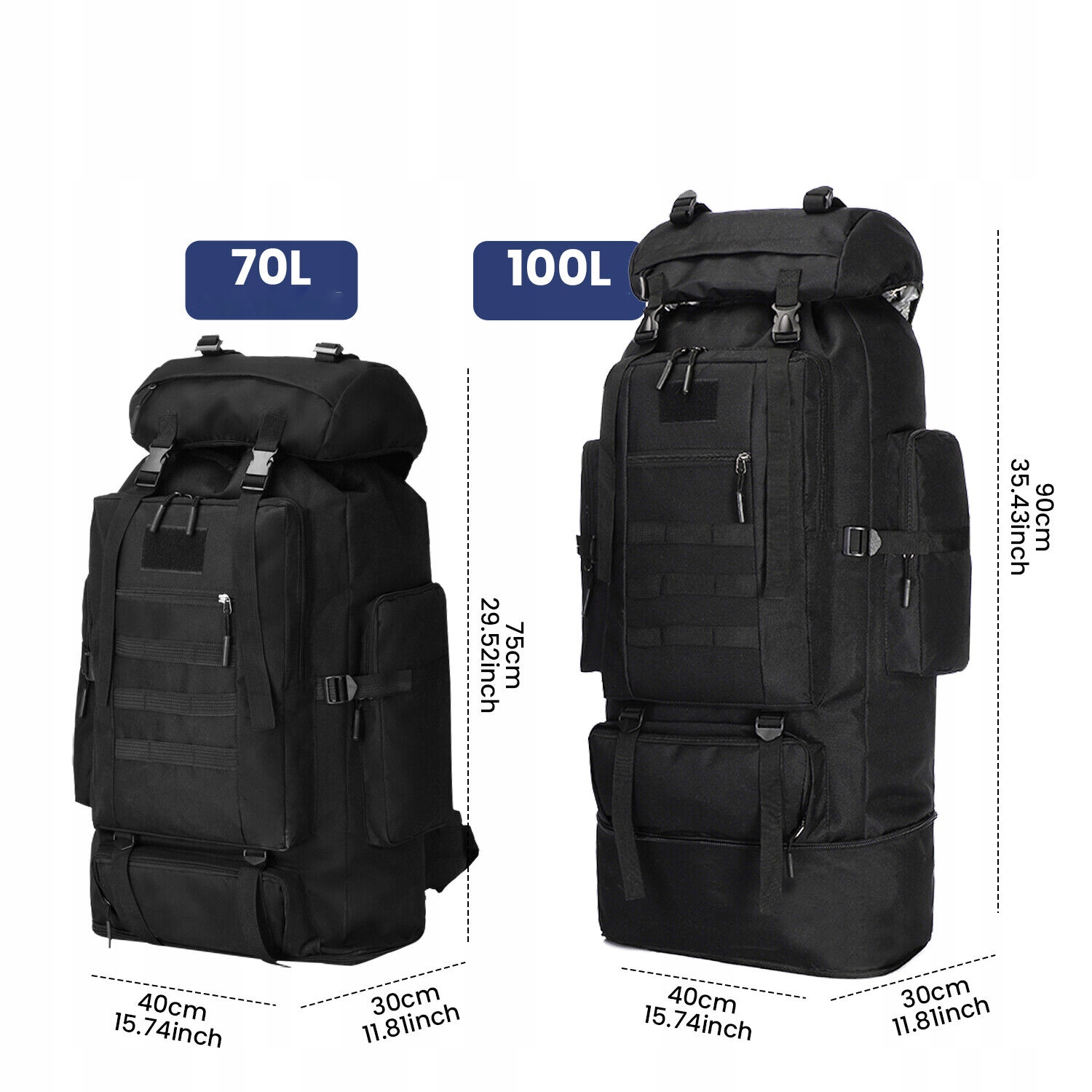 PLECAK TURYSTYCZNY 100L Z ZAMKAMI BŁYSKAWICZNYMI 600D OXFORD 40X30X75CM