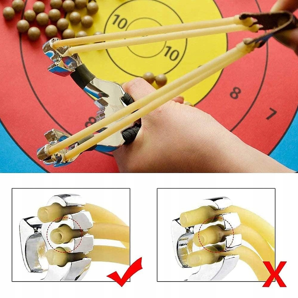 [💪] МОЩНОСТЬ И ДОЛГОВЕЧНОСТЬ: Профессиональная рогатка изготовлена из прочного цинкового сплава, а не хрупкого пластика. Рукоять прочная, а ручка обернута прочной нейлоновой веревкой для идеального и надежного захвата. Три прочные накладки на приводе гарантируют большую мощность, дальность и точность, чем у стандартных моделей.