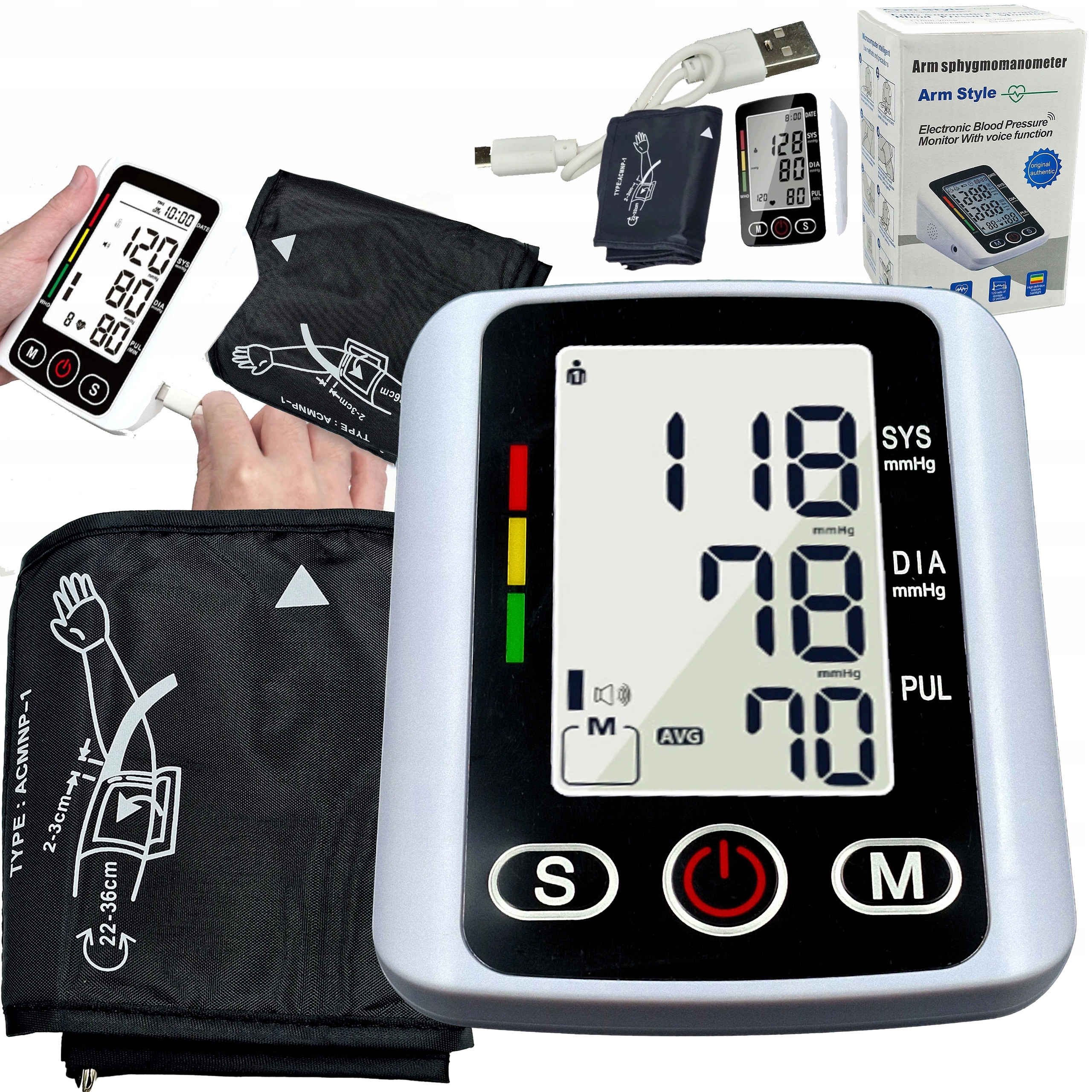 ЭЛЕКТРОННЫЙ МОНИТОР АРТЕРИАЛЬНОГО ДАВЛЕНИЯ С ЗАГРУЗКОЙ, БОЛЬШОЙ СВЕТОДИОДНЫЙ ДИСПЛЕЙ, 22–32 СМ, ЗАПИСЬ