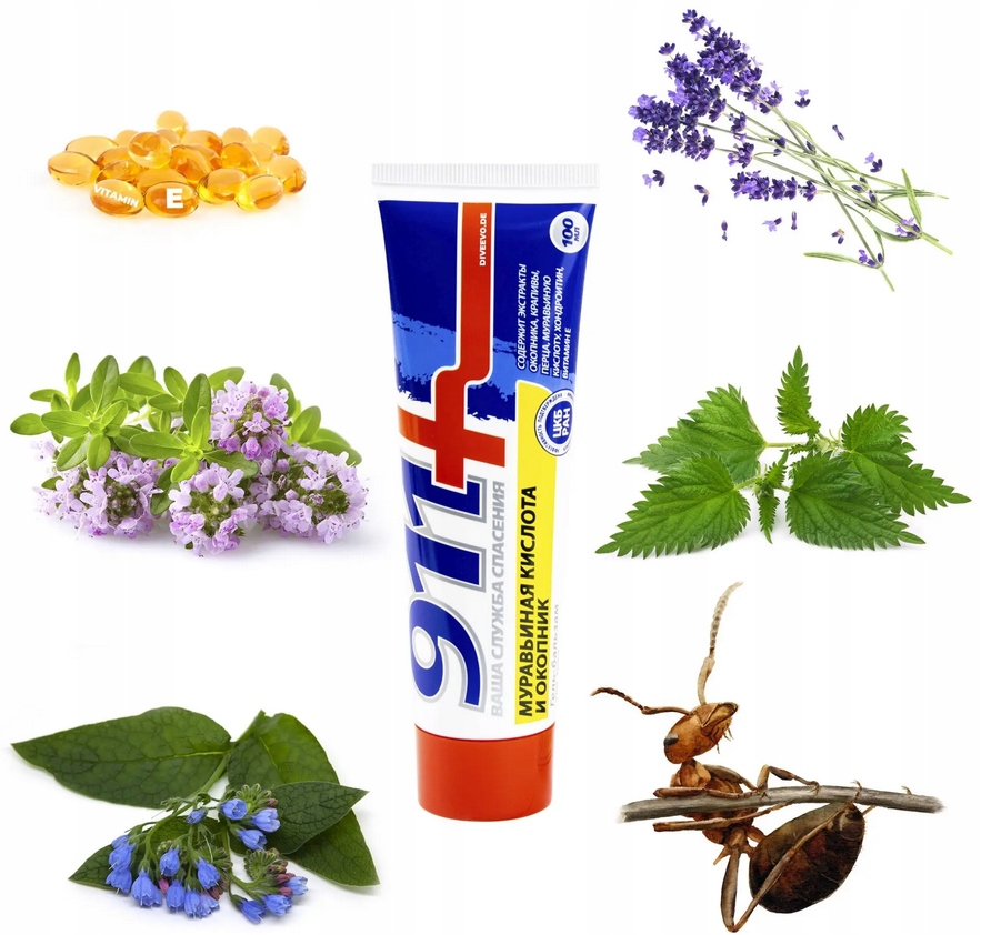 Aqua, Glycerin, Ethylhexyl Stearate, Ammonium acryloyldimethyltaute/VP Copolymer, Symphytum Officinale Extract, Camphor, Urtica Dioica (Nettle) Extract, Juniperus Communis Oil, Lavandula Angustifolia (Lavender) Oil, Eucalyptus Globulus Leaf Oil, Thymus Vulgaris Oil, Capsicum Аннуум экстракт, хондроитин сульфат натрия, ацетат токоферила, триэтаноламин, метилкотинат, винерея кислота, пропиленгликоль (и) диазолидиниловая мочевина (и) метил парабен ((и) пропилена Парабана, лимонена, линалал, кумарин ..