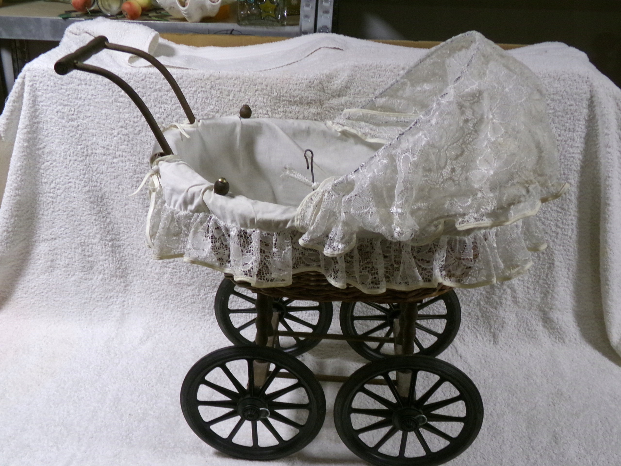 ПЛЕТЕНАЯ КОЛЯСКА ДЛЯ КУКЛЫ - ВИНТАЖ
