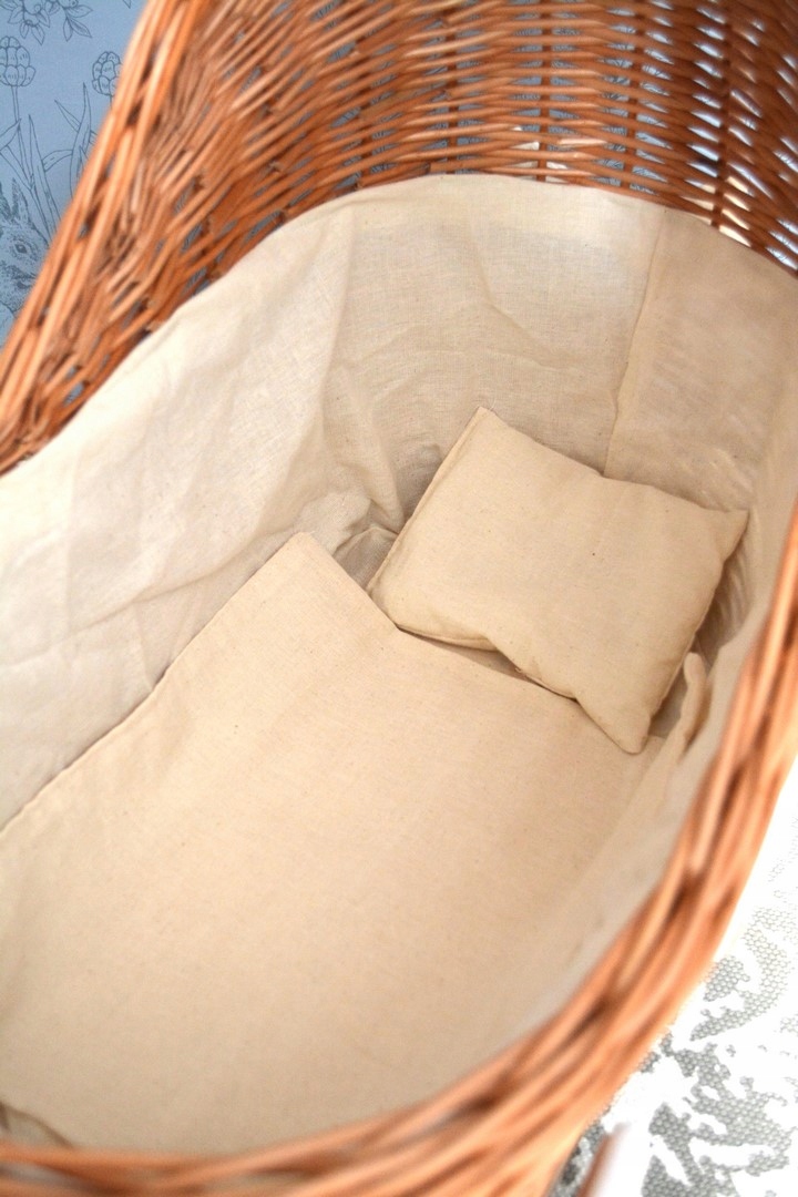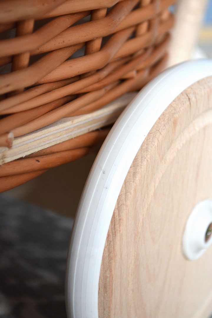 плетена коляска для ляльки, штовхач природа + резина, обшивка + підстилка