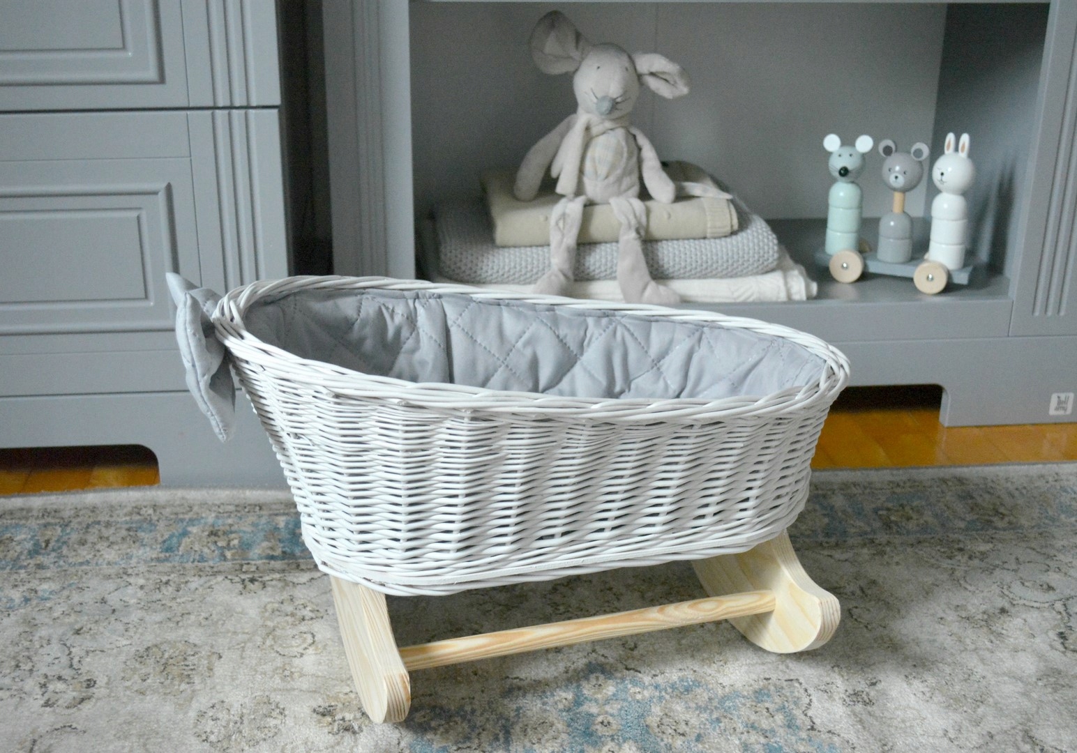 Колыбелька для кукол плетеная - белая - отделка и
