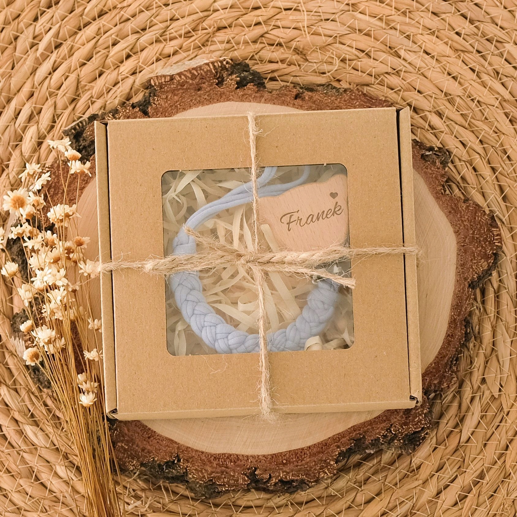 Плетеная подвеска-пустышка КОТЕК с персонализацией и выбором цвета
