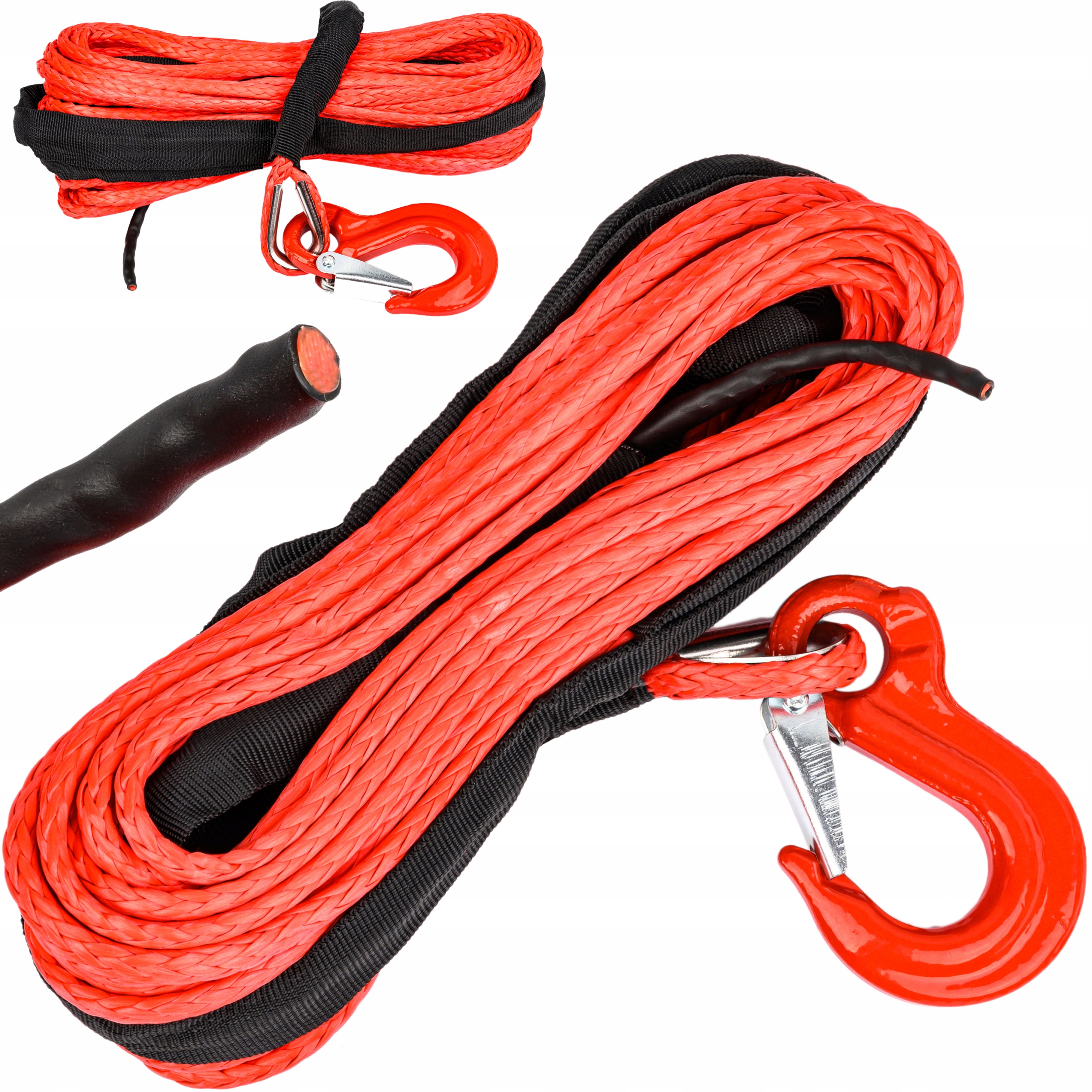 Универсальный синтетический трос длиной 15 метров и диаметром 6 мм подходит к любой лебедке. В течение многих лет в электрических лебедках вместо стального троса использовался синтетический трос. На конце веревки имеется наперсток и крючок.