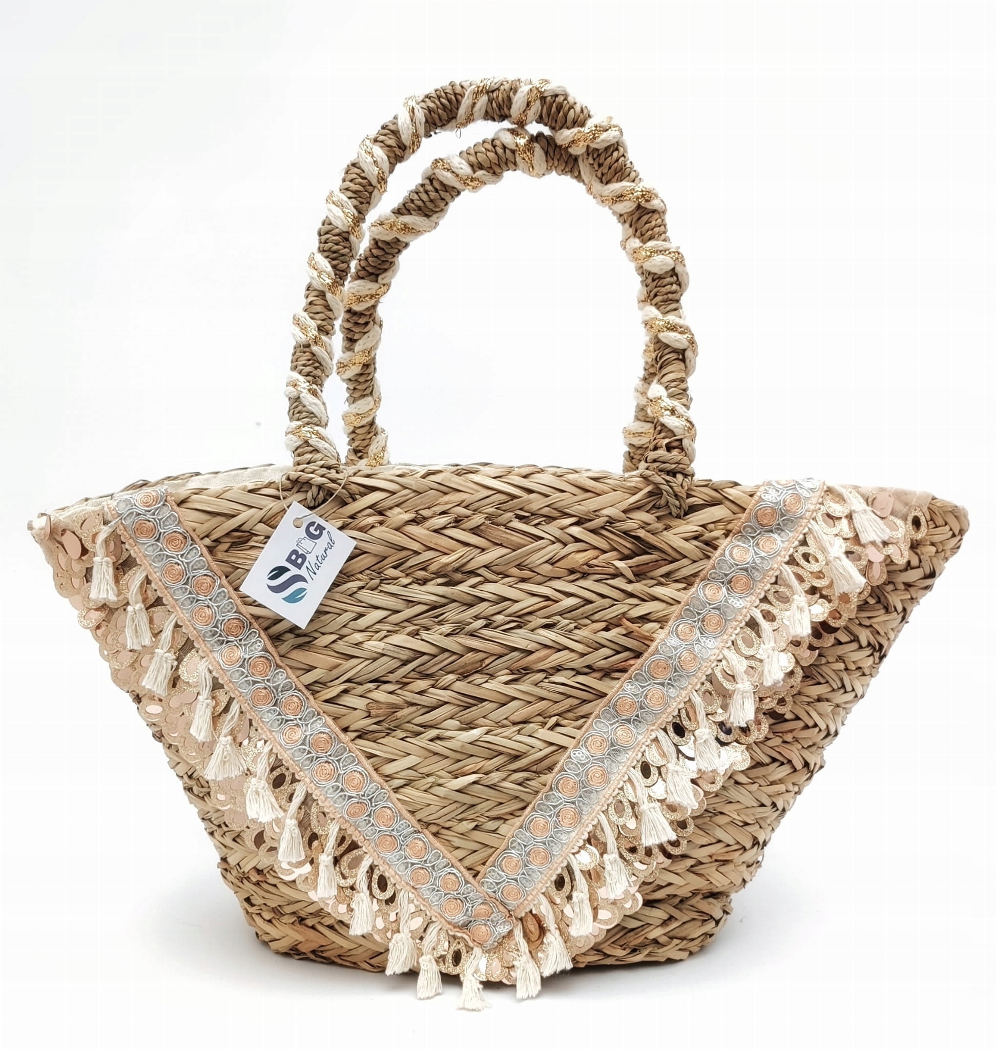 Плетена сумка-кошик з морської трави з паєтками