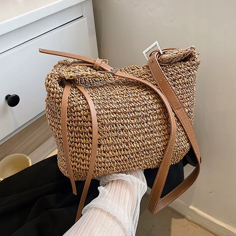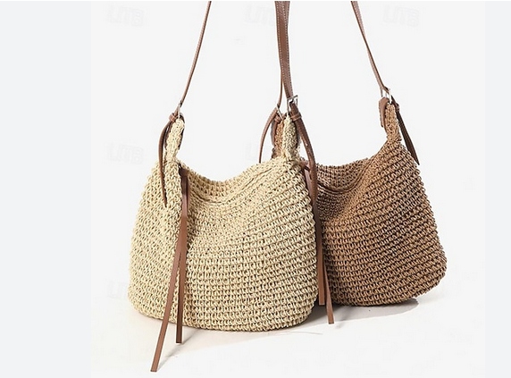 ЛЕТНЯЯ СУМКА ИЗ РАФИИ, НА МОЛНИИ НА ПЛЕЧЕ, ГОРОДСКОЙ ПЛЯЖ, 2 ЦВЕТА