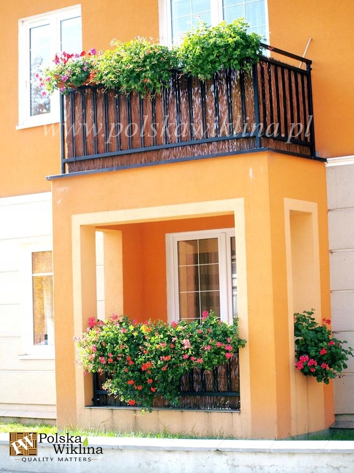 Благодаря плетеным коврикам можно эффективно перегородить пространство между балконными перилами, что обеспечивает дополнительную защиту от падения ребенка через перила. Более того, такой чехол может стать хорошим решением для людей, живущих на первом этаже, которые не хотят, чтобы прохожие видели, например, высушенное белье внутри квартиры или на балконе. Плетеный коврик прекрасно сочетается с искусственной травой, которая заменяет небольшой сад на балконе.