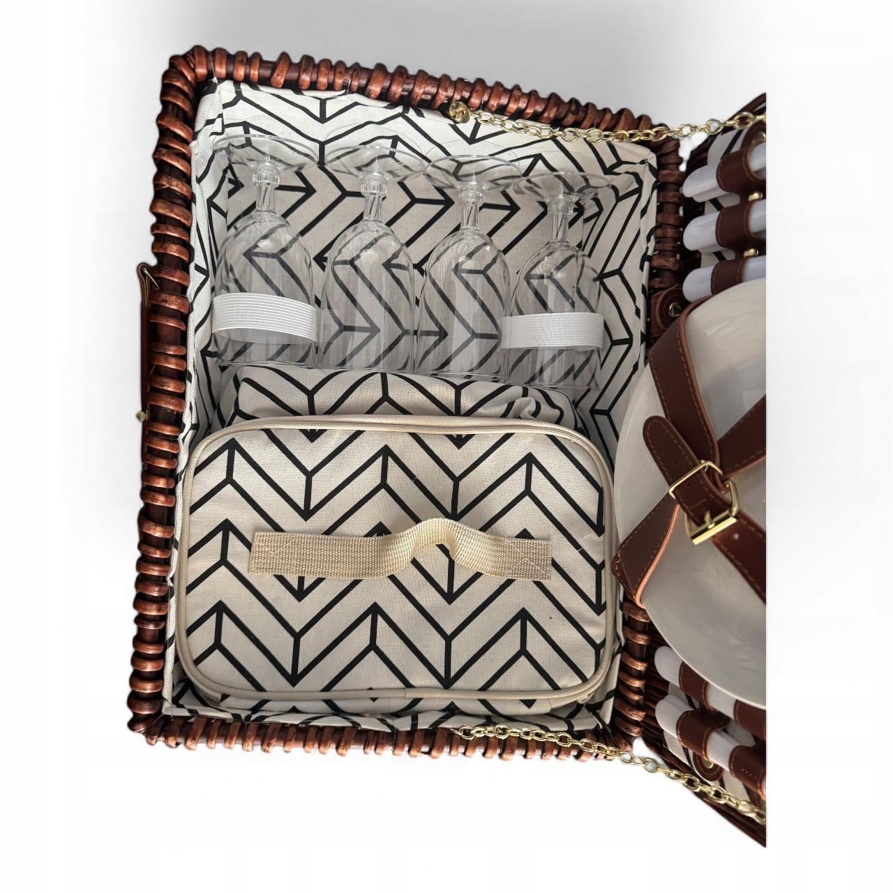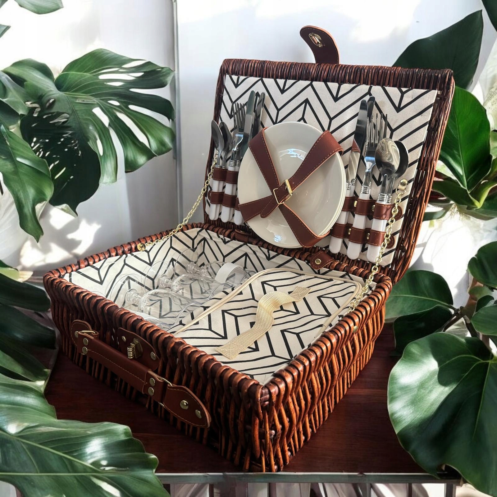 Чрезвычайно практичная и элегантная корзина пикника, сделанная из викера с дополнительными пространством для продуктов.