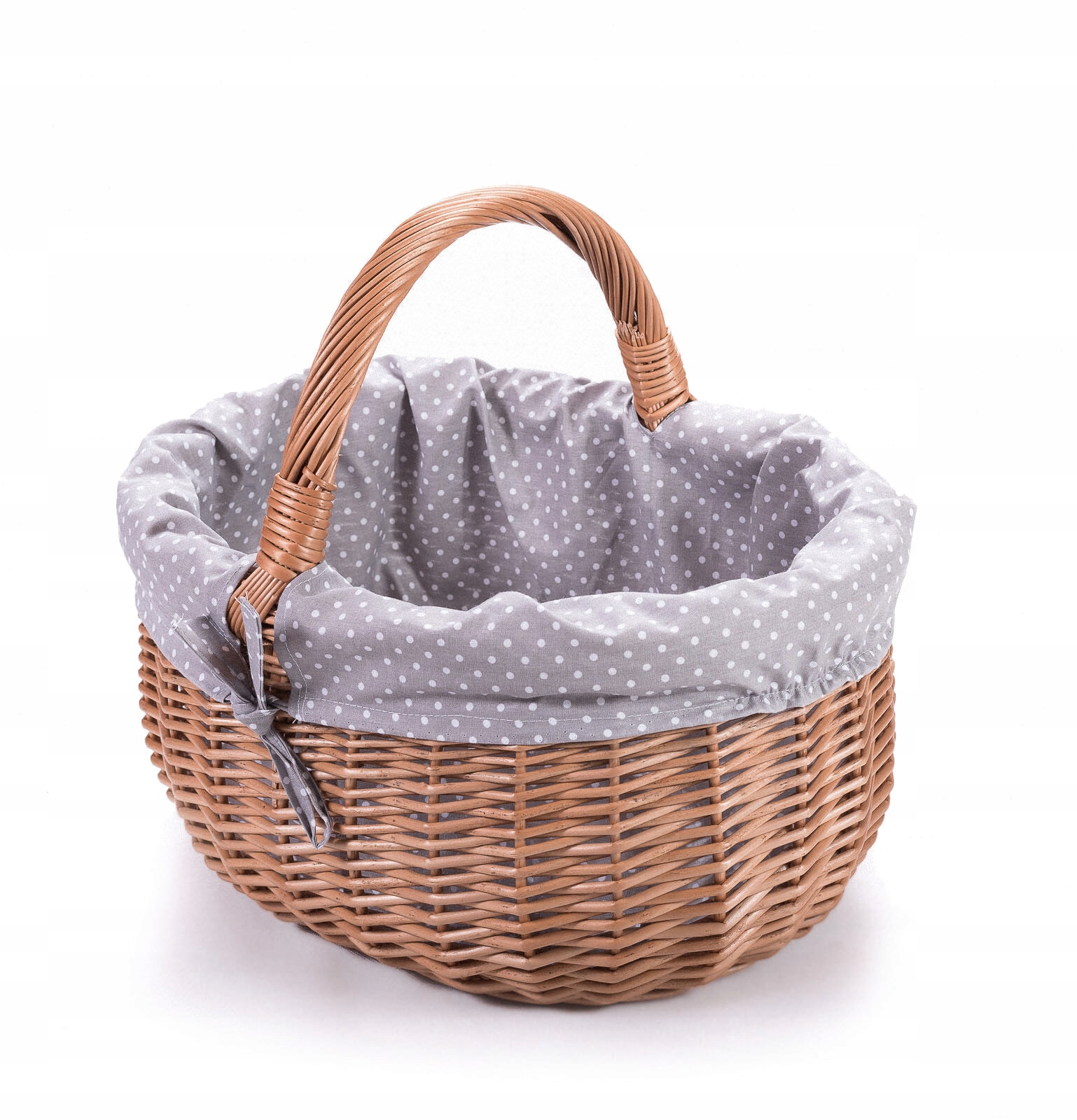 Классическая корзина для покупок, грибы, для сбора урожая в саду. В комплект входит серая пунктирная отделка, крепящаяся ремешками.