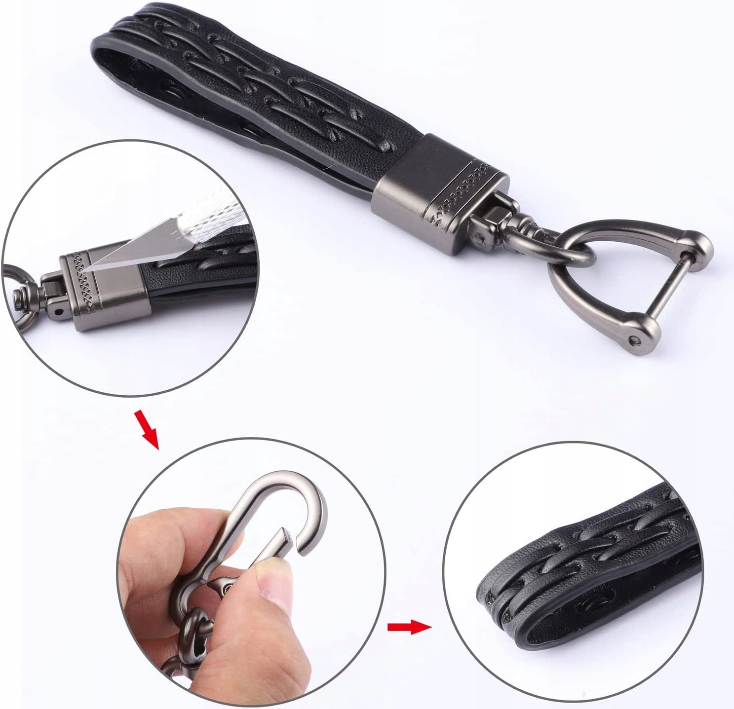 Кожаный брелок с карабином, D-пряжкой и отверткой