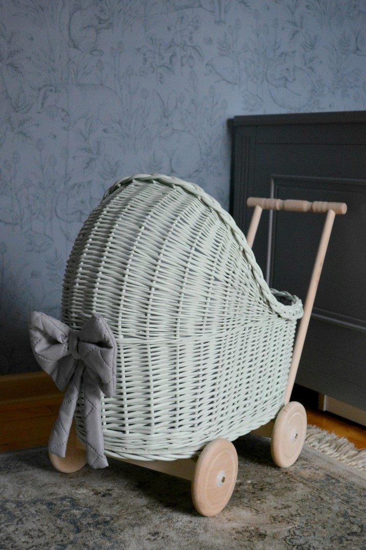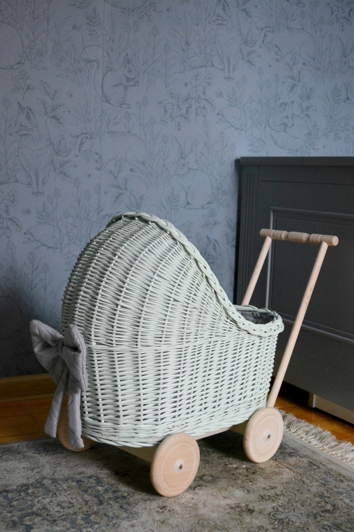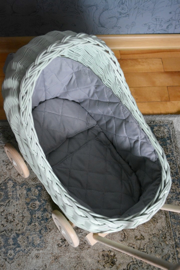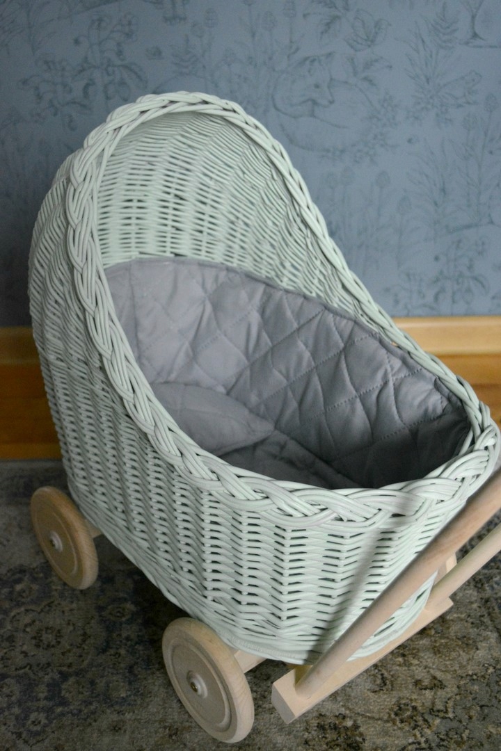 Плетеная коляска для кукол MINT толкатель + подстилка