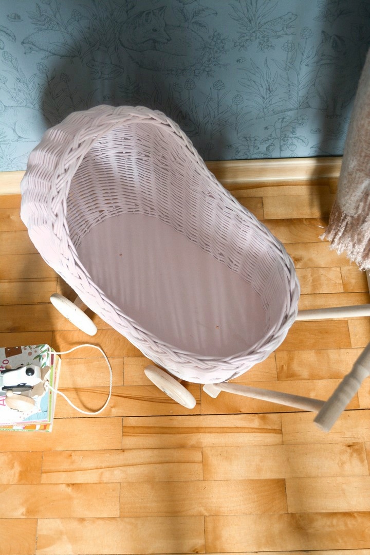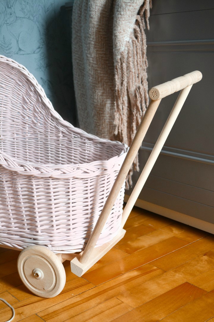 Плетеная тележка для кукол с низкой розой