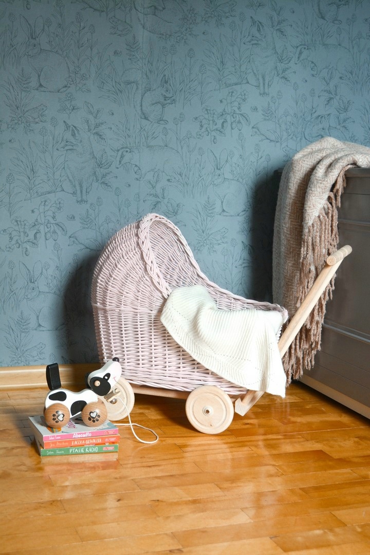 Низкая плетеная коляска для кукол