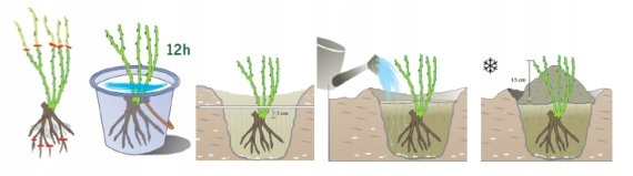 - Чтобы защитить молодые кусты от заморозков осенью и пересыхания весной, вокруг растения укладываем небольшой холмик земли. растение.