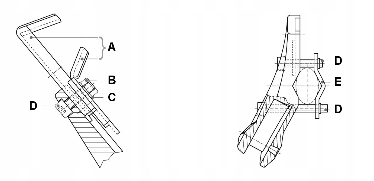 - E — Монтажная пластина нижнего пера.