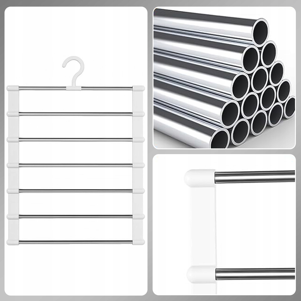 Экономия места. Благодаря лестничной конструкции с 7 полками наша вешалка позволяет разместить на одной вешалке до 6 пар брюк, экономя до 80% места по сравнению с традиционными методами хранения. Идеально подходит для небольших шкафов, квартир, общежитий или путешествий.