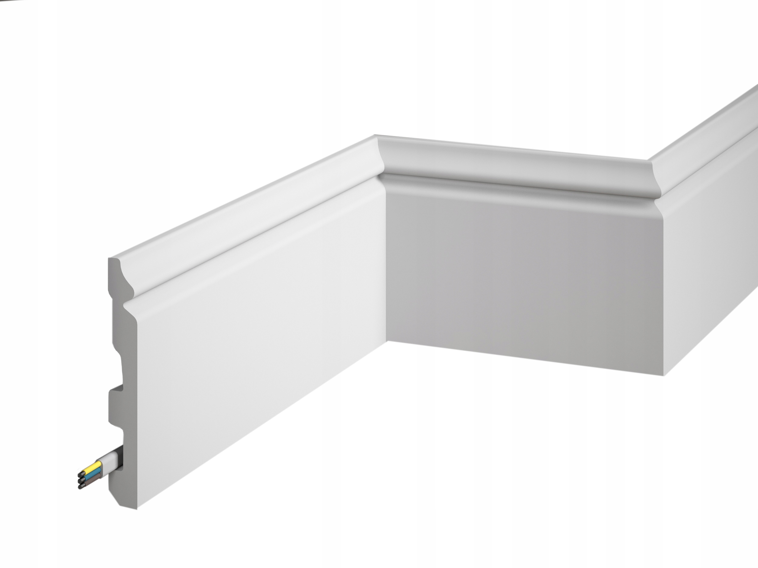 Полоска изготовлена из Polyforce®. Это высококачественный вид полиуретана, применение которого делает плинтусы MD 360 легкими и гладкими. Этот материал отличается высокой плотностью, прочен и устойчив к ударам. При этом плинтусы из него легко резать и собирать. Их можно шлифовать и красить – их поверхность обеспечивает хорошую адгезию краски.