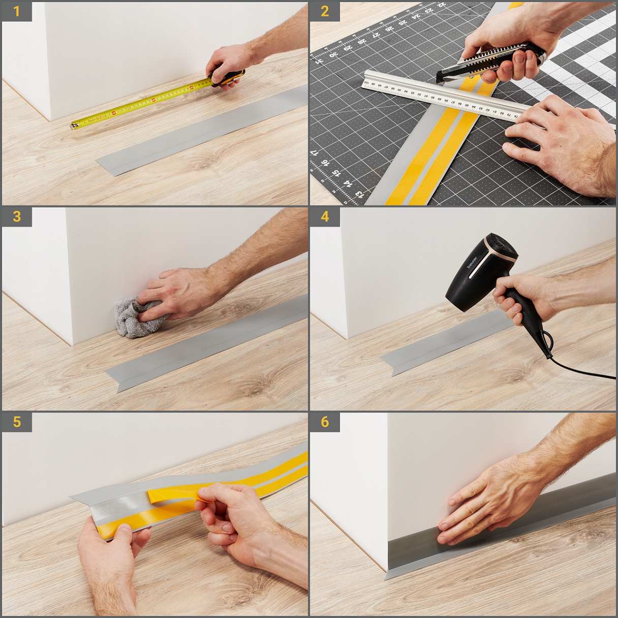 - ВНИМАНИЕ: сборку необходимо производить правильно с первого раза, отклеить и приклеить снова не обеспечивает хорошей фиксации. Перед монтажом прогрейте полосу или профиль горячим воздухом, например, с помощью фена. Предназначен для приклеивания на гладкие поверхности. Можно использовать на структурных поверхностях только при использовании дополнительного клея. !!!