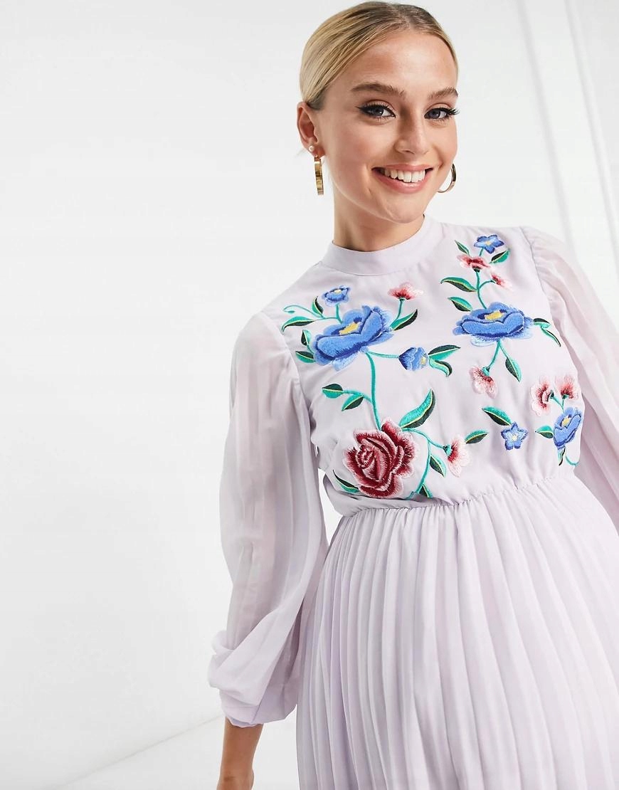 ПЛАТЬЕ ПЛИССИРОВАННОЕ С ЦВЕТОЧНОЙ ВЫШИВКОЙ K3U B19__L