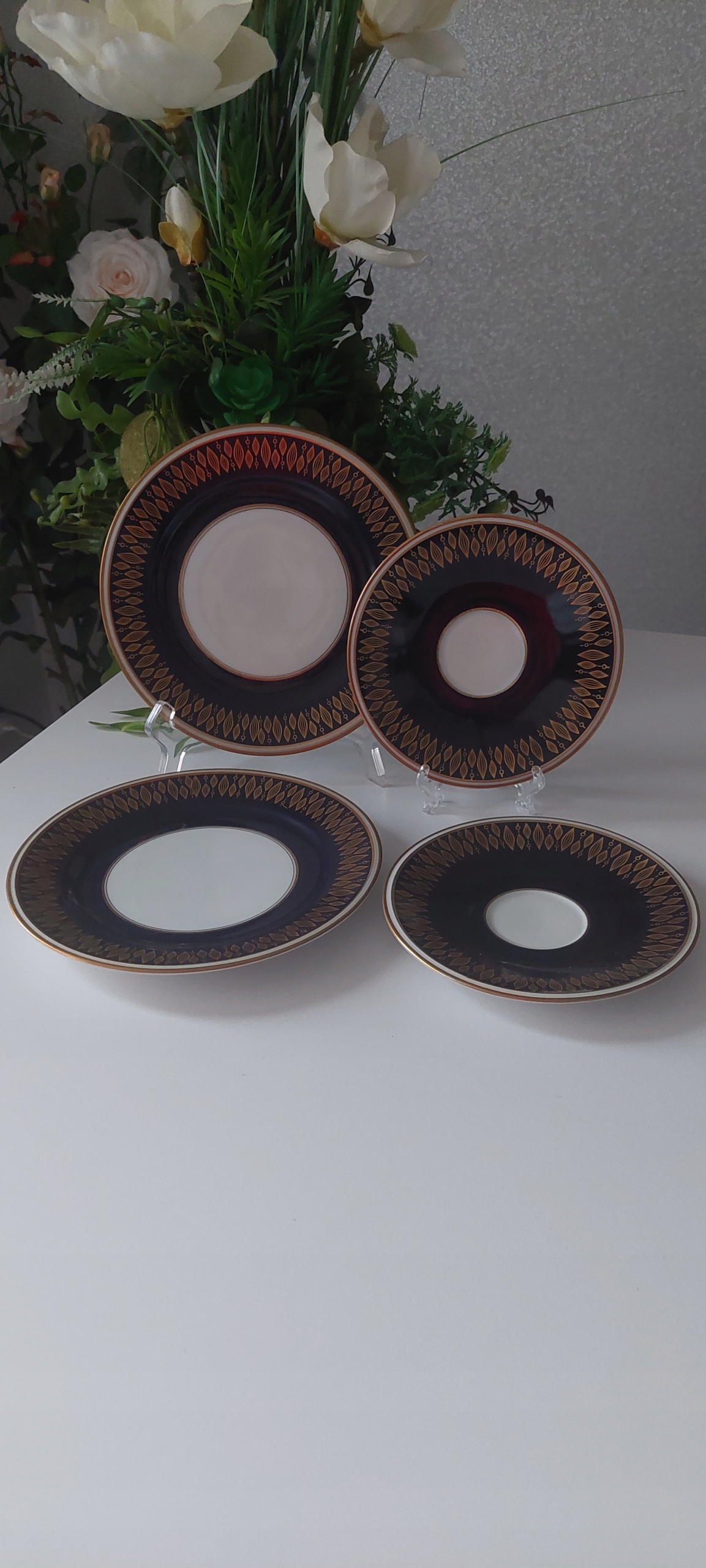 Две десертные тарелки диаметром 19 см, две тарелки для чашек диаметром 15 см. Очень хорошее состояние.