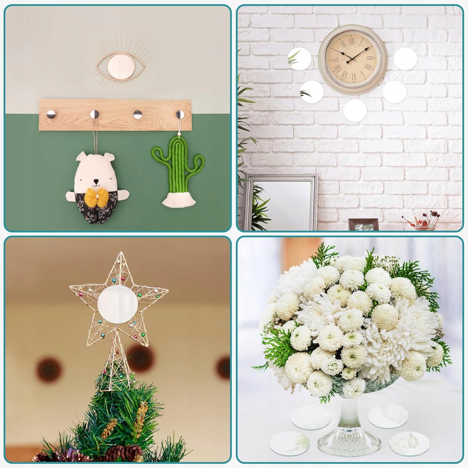 Круглые зеркала можно гравировать или красить; добавляйте их в рамки для фотографий, шкатулки для драгоценностей, двери, окна и шкафы; можно использовать в качестве подставок, рождественских украшений и сезонного украшения стола.