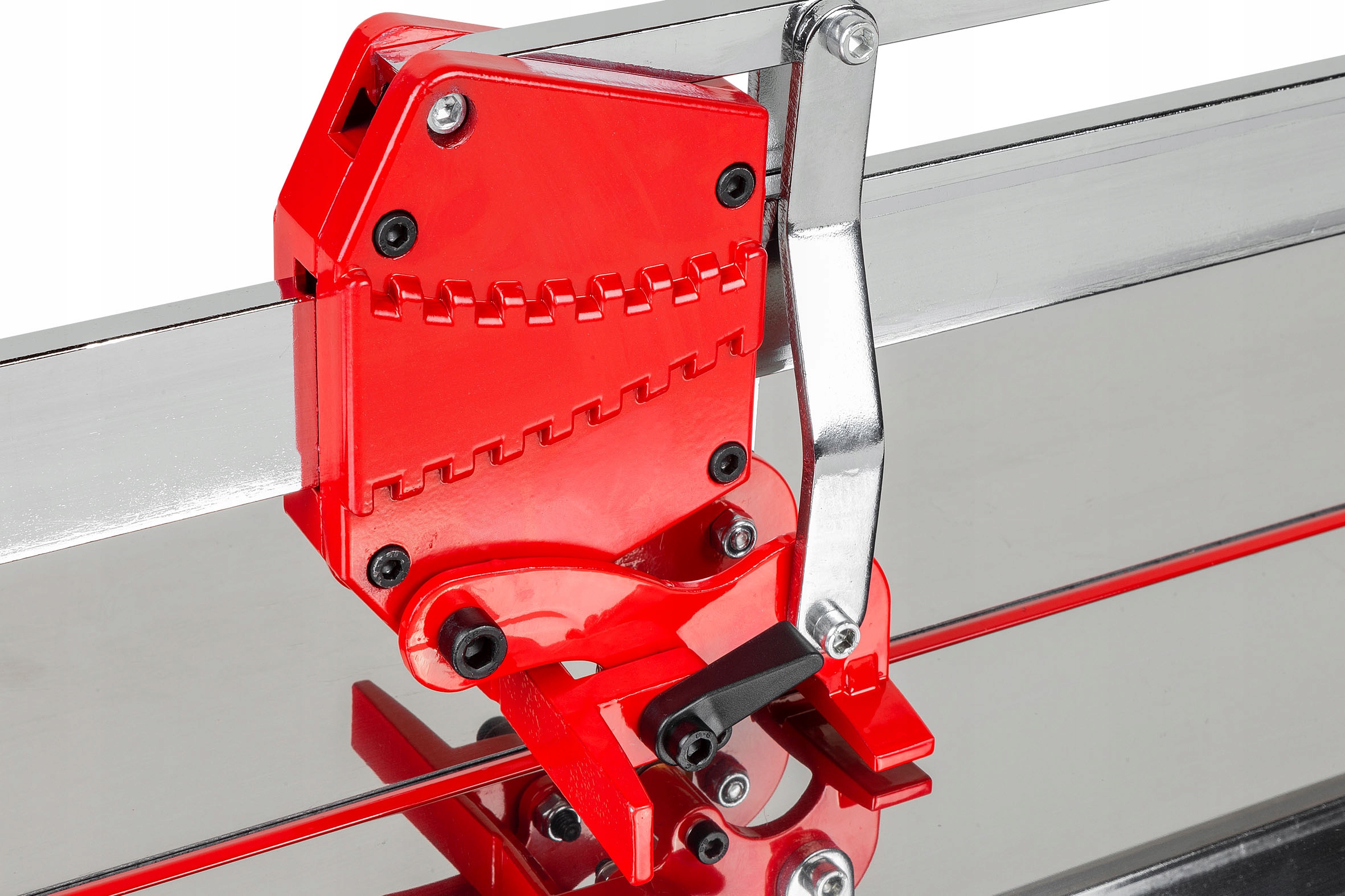 Профессиональный резак для резки плитки с максимальной длиной реза 1000 мм. Устройство позволяет выполнять прямой и наклонный рез до 45°. Одинарная профилированная направляющая и прочные роликовые подшипники гарантируют стабильную и точную работу.