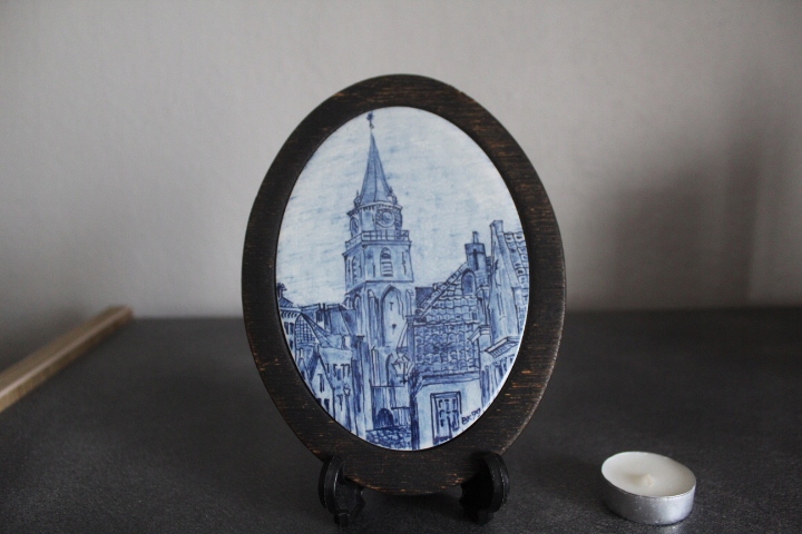 ПЛИТКОВА НАМАЛЬОВАНА КАРТИНА, КОБАЛЬТОВИЙ МІСЬКИЙ ПЕЙЗАЖ, 25/954