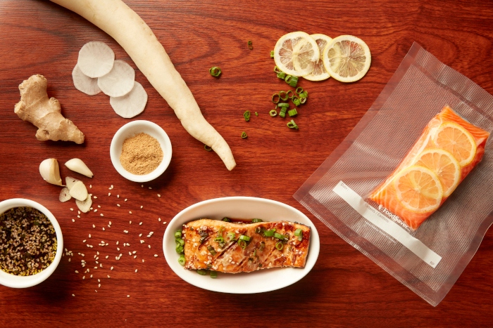 Пакеты FoodSaver и фольга с накаткой имеют четкую структуру на одной стороне. сторона. Тиснение на фольге предназначено для эффективного удаления воздуха при вакуумной упаковке. Пакеты FoodSaver и пленки с накаткой имеют многослойную конструкцию из полиамида, используемого в качестве барьера для кислорода, и полиэтилена (LLDPE), используемого в качестве барьера для водяного пара. Они прочные, но гибкие и создают герметичный барьер вокруг продуктов питания. Их можно использовать в холодильнике, морозильной камере и микроволновой печи (размораживание), а также для приготовления пищи.