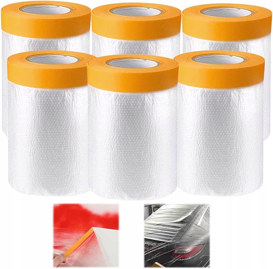 ПЛЕНКА ПОКРАСОЧНАЯ, ПРОЗРАЧНАЯ ПЛЕНКА ДЛЯ МАСКИРОВКИ С ЛЕНТОЙ 6 РОЛЛ ПЭ 20М*55СМ
