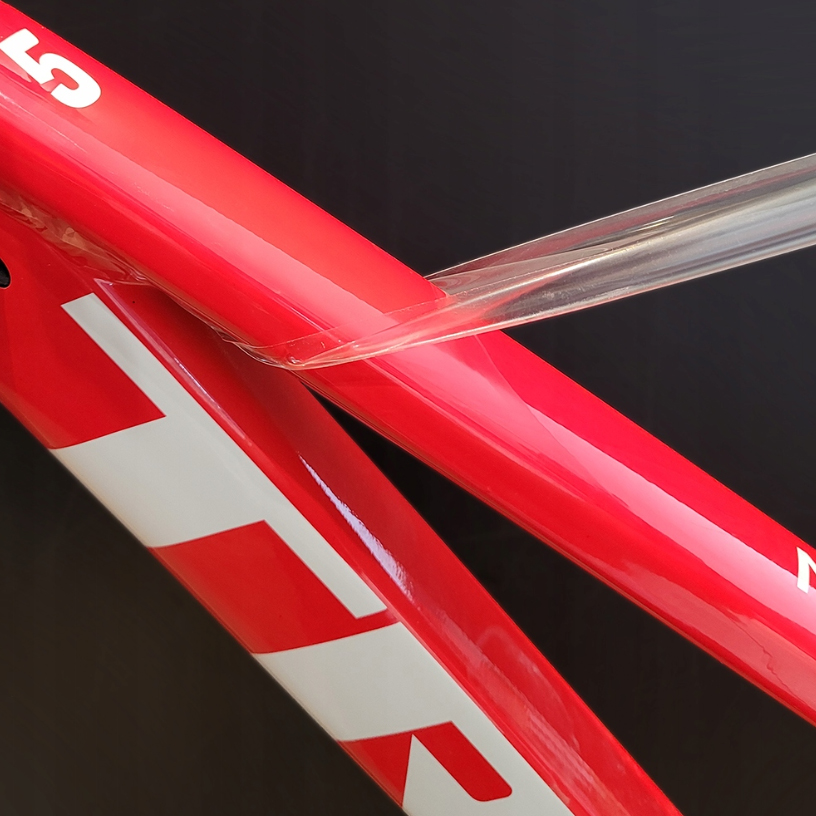Применение: Ламинат идеально подходит для мест, которые особенно подвержены повреждениям и царапинам от велосипедной и автомобильной краски. Идеально подходит для нижней и верхней трубы, заднего треугольника, ножек амортизаторов, защиты велосипедной упаковки и т. д. Самовосстанавливающийся - если возникнет царапина, она автоматически исчезнет под воздействием тепла, например, на велосипеде. солнечный свет или теплая вода.