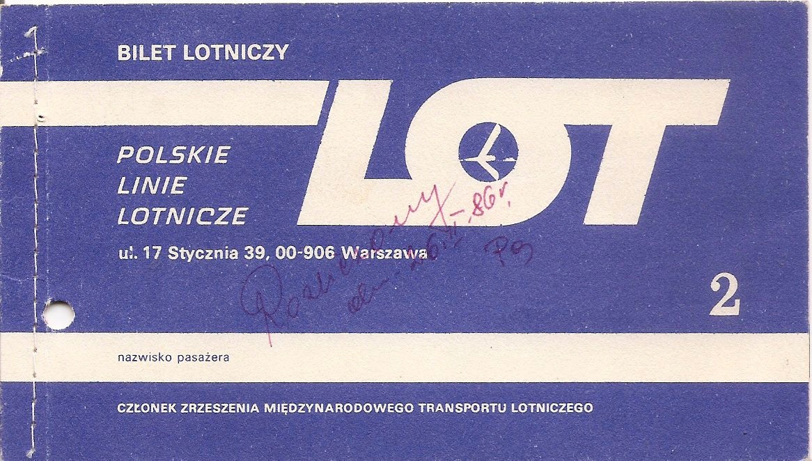PLL LOT BILET LOTNICZY KRAJOWY -WARSZAWA KRAKÓW WARSZAWA -1985 rok