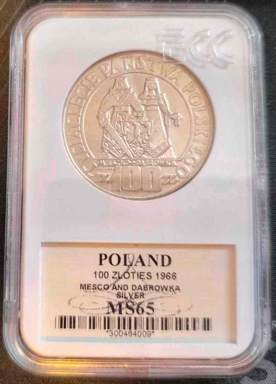 Монета 100 Zlotys Miesko и Dąbrowka 1966