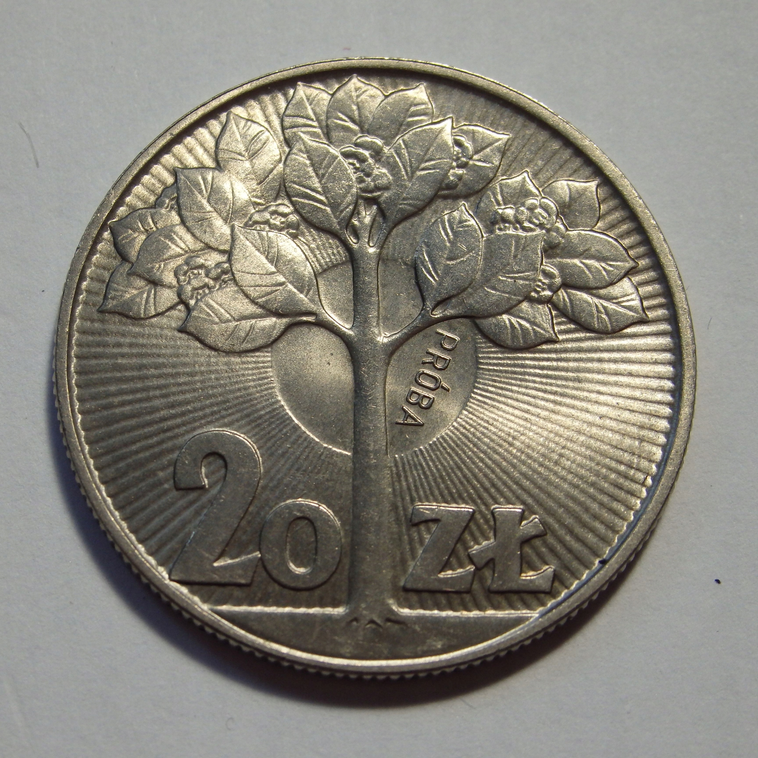 PLN 20, цветущее дерево, тест, 1973 X1957