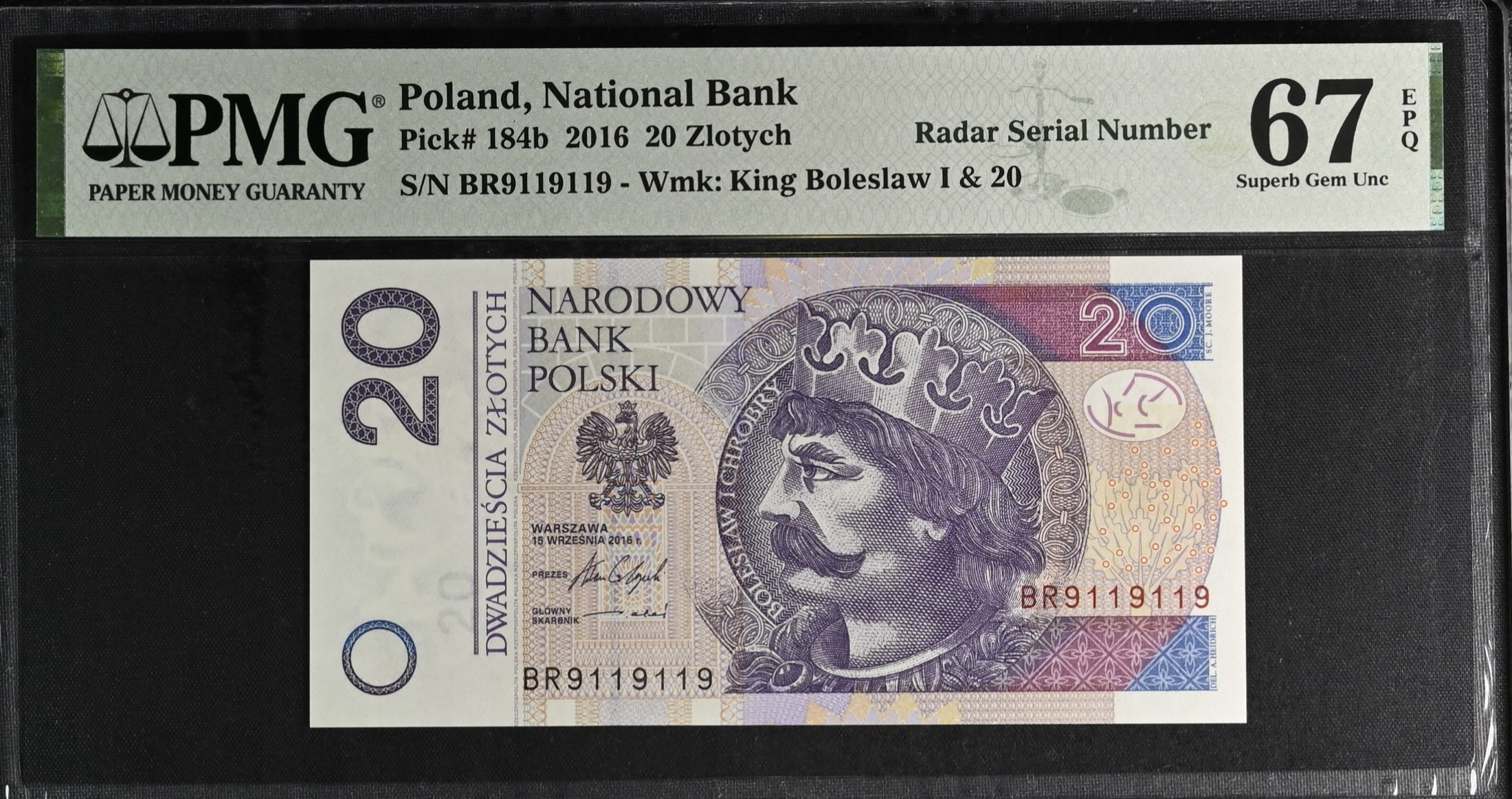 PLN 20 PLN 2016 - радар - 9119119 - PMG 67 EPQ